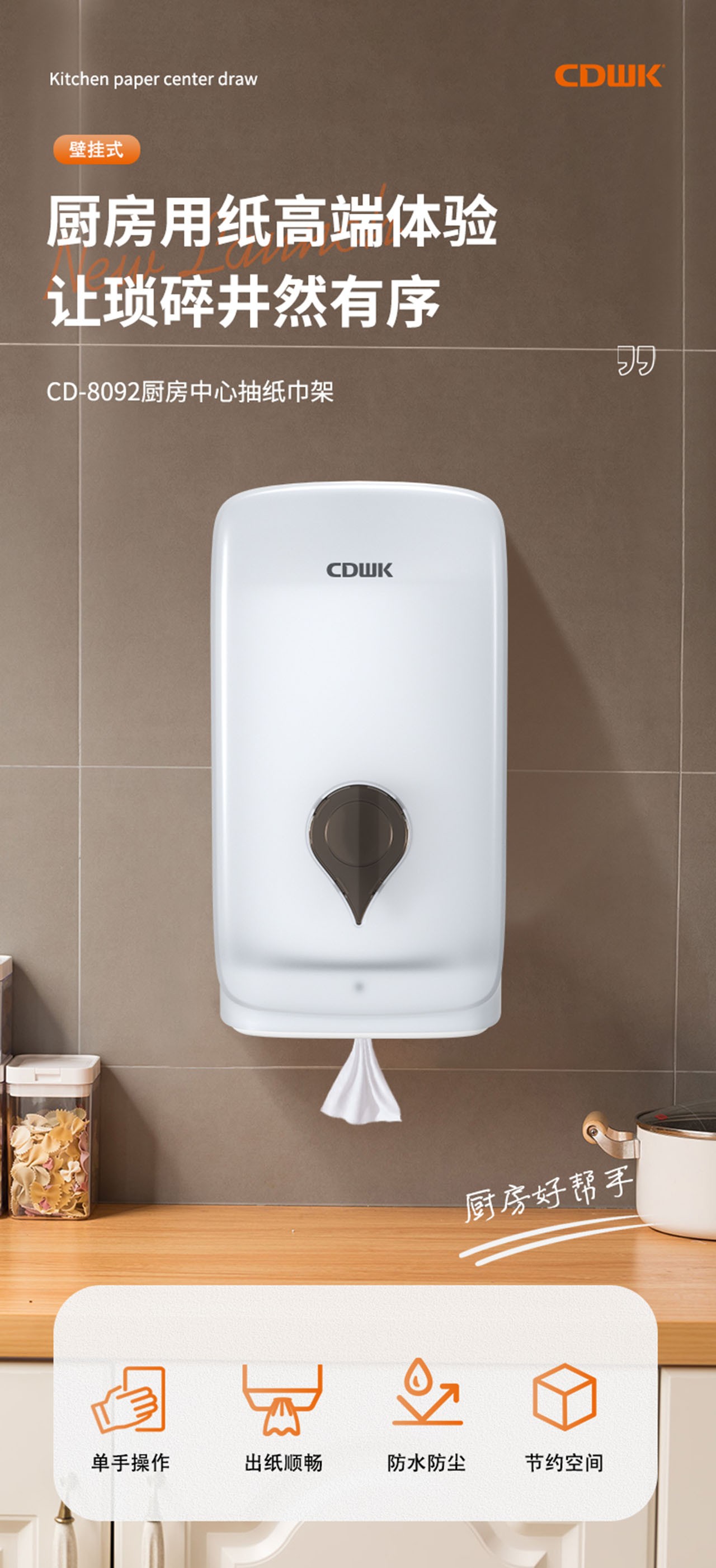 新品上市 | CDWK創(chuàng)點廚房中心抽紙巾架,讓廚房用紙更衛(wèi)生更便捷!