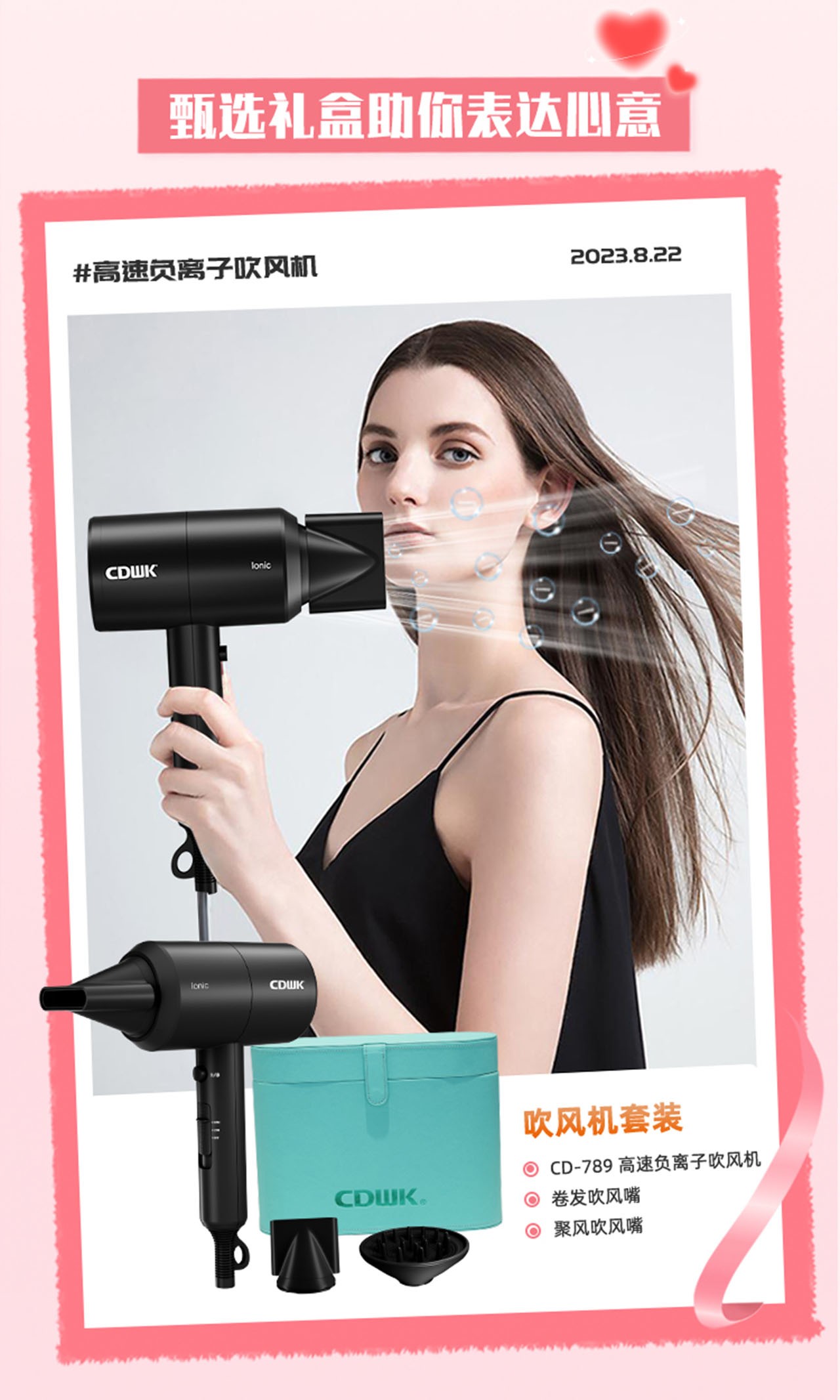 精心打造吹風(fēng)機(jī)禮盒,充滿用心與關(guān)愛,給愛人送去安全、高效的吹風(fēng)體驗(yàn),還有每一天的滿滿自信與魅力。